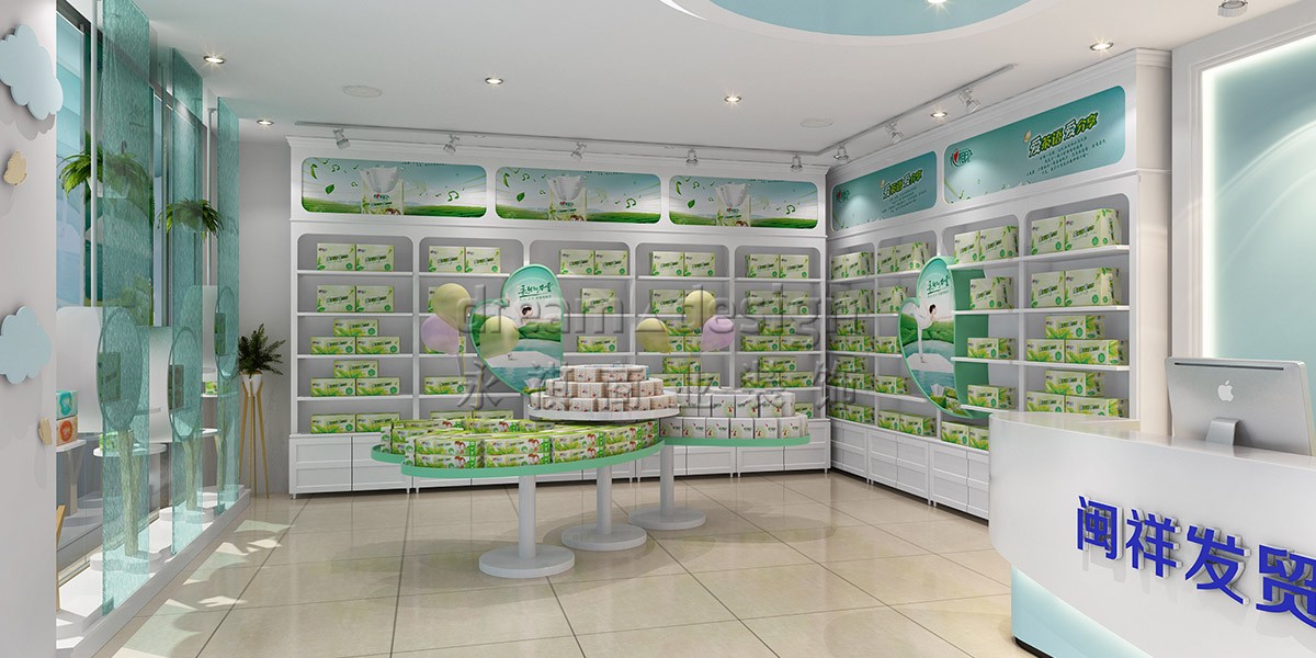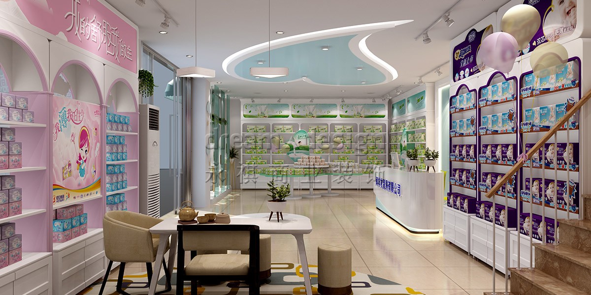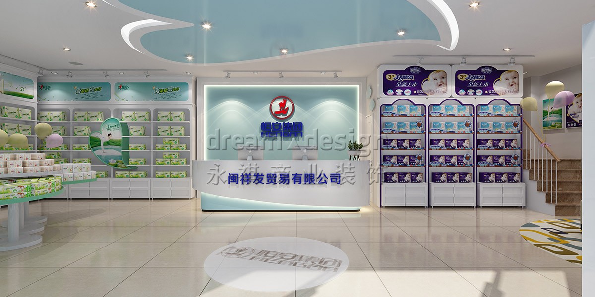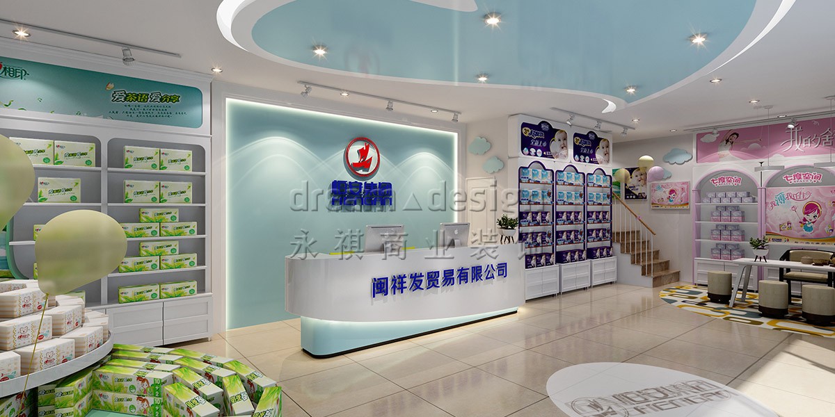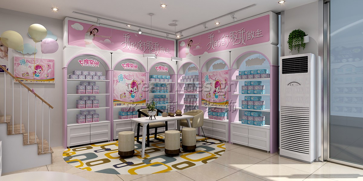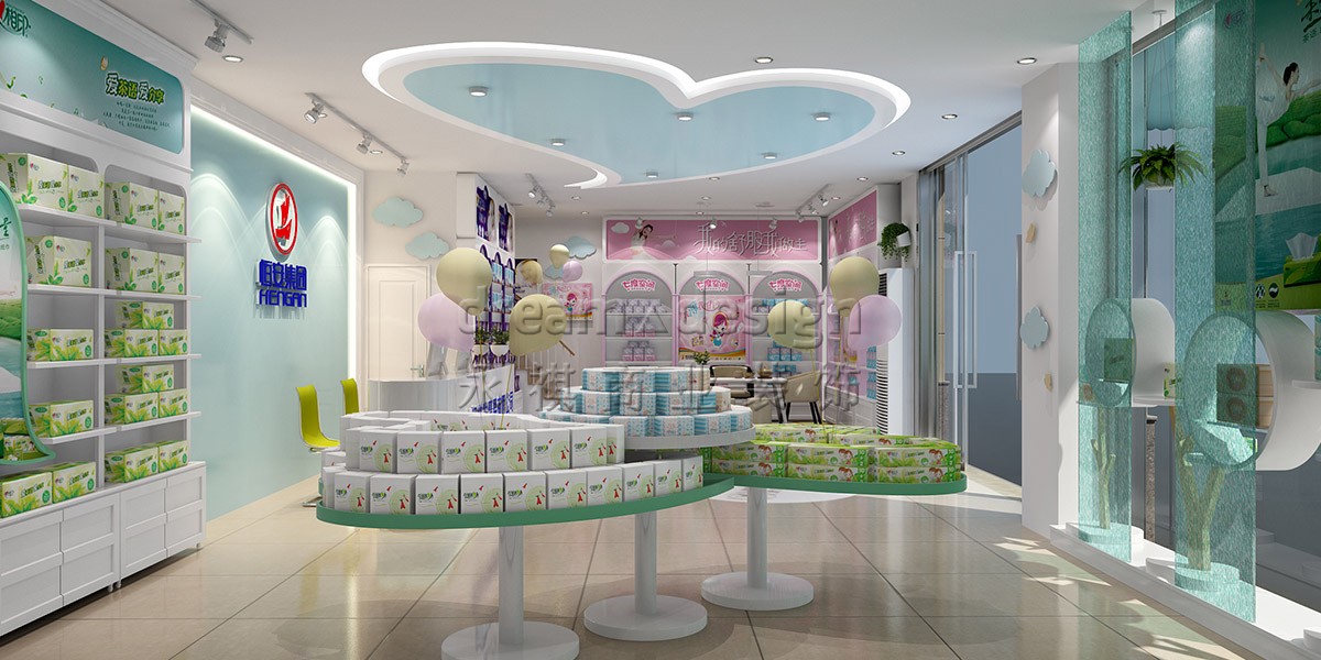 永祺采用“潔凈云朵”為設(shè)計(jì)核心,別出心裁采用夢(mèng)幻淺藍(lán)、淺粉、淺綠來(lái)劃分心相印、七度空間、安兒樂(lè)三大區(qū)域,并運(yùn)用3種造型各異的時(shí)尚柜型,突出產(chǎn)品特性,彼此相得益彰,融于整體空間,潛移默化中增加顧客購(gòu)買成單量。